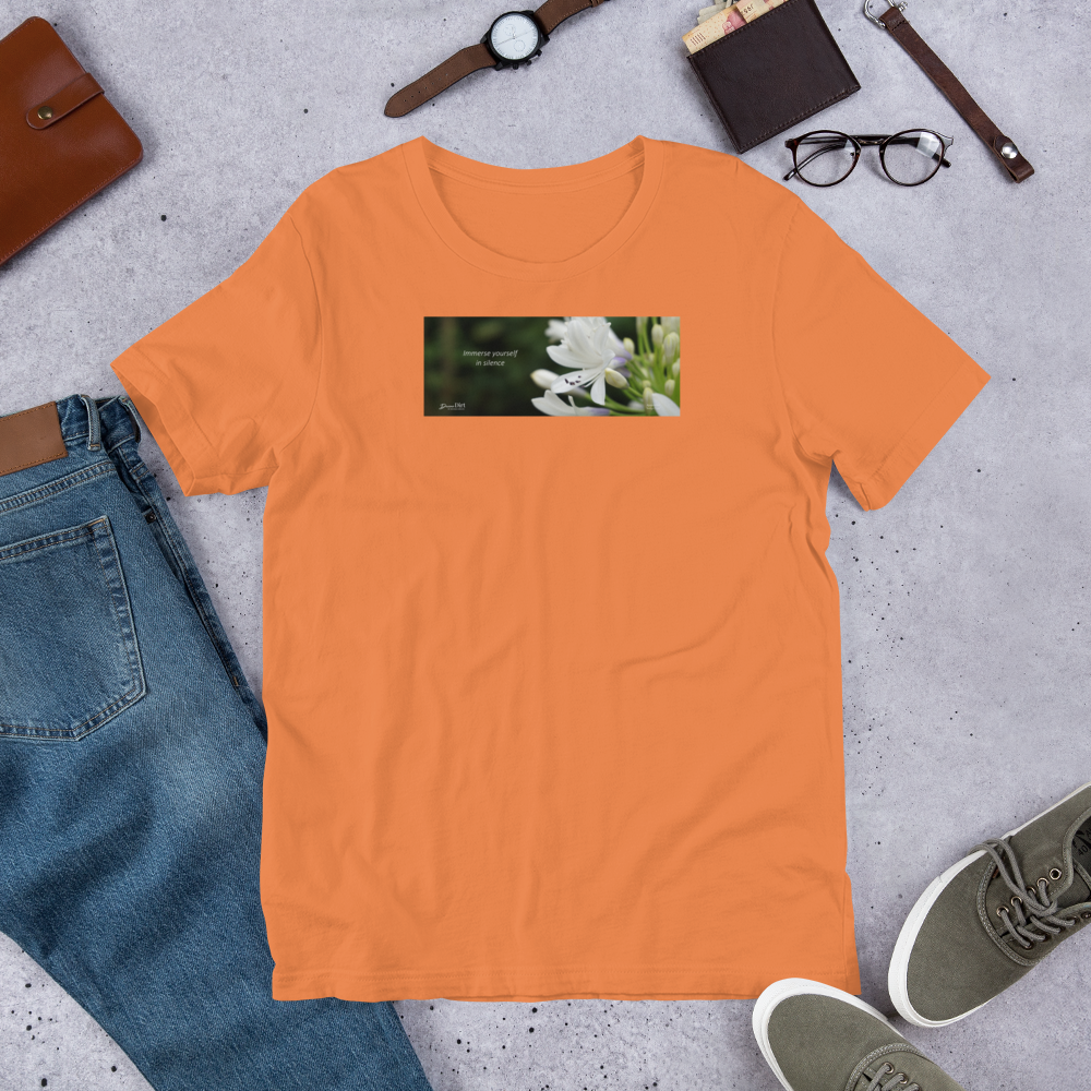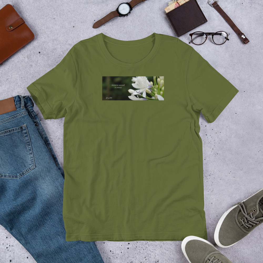 Agapanthus-Indigo Frost. “Immerse yourself in silence”. Short-Sleeve Unisex T-Shirt