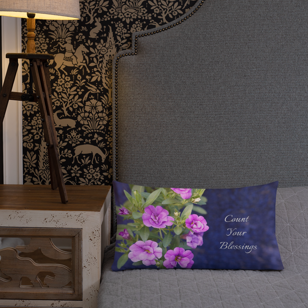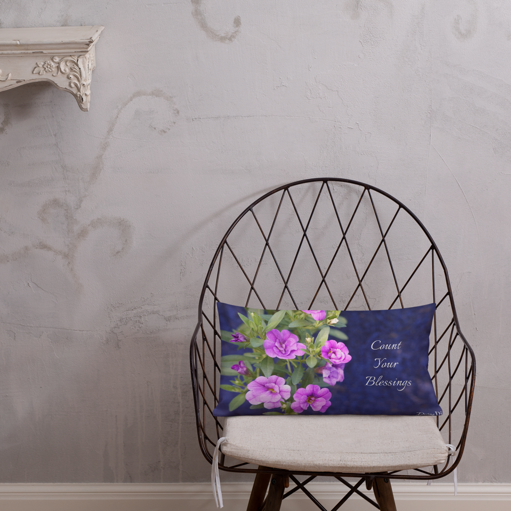 Purple Petunias Premium Pillow 'Count Your Blessings'