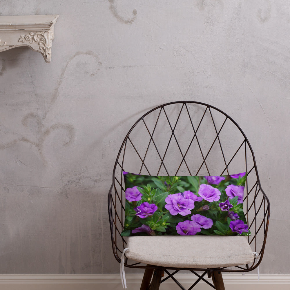 Purple Petunias Premium Pillow with white back