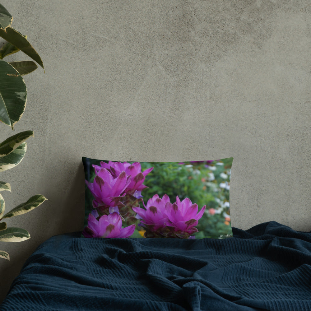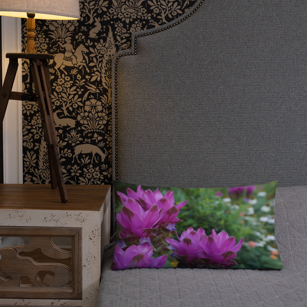 Pink Siam Tulips Premium Pillow with White Back