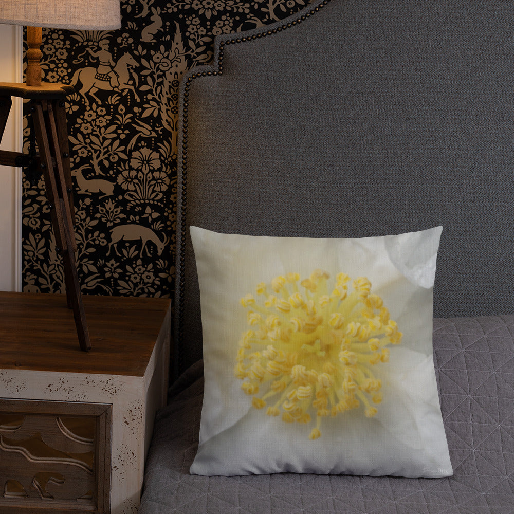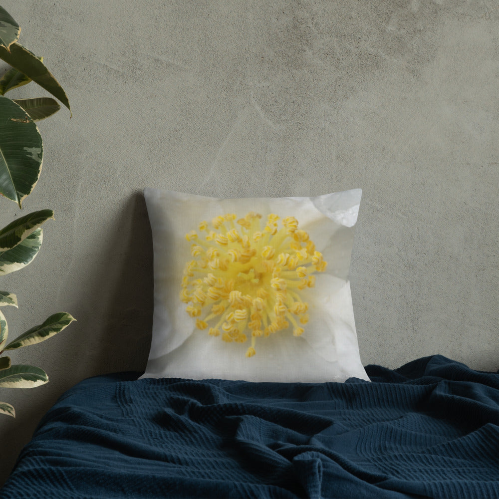 White Camellia Premium Pillow with White Back
